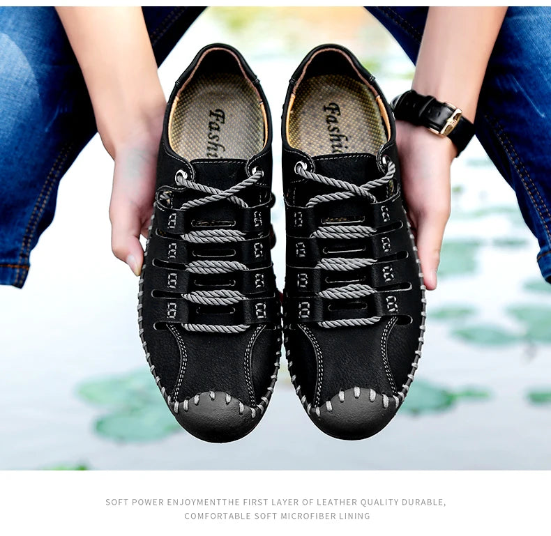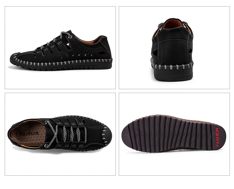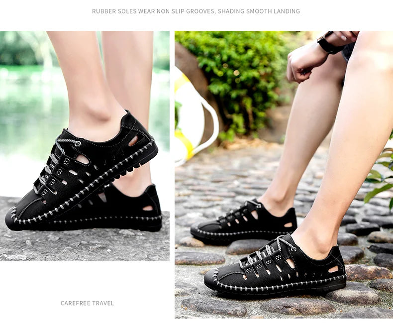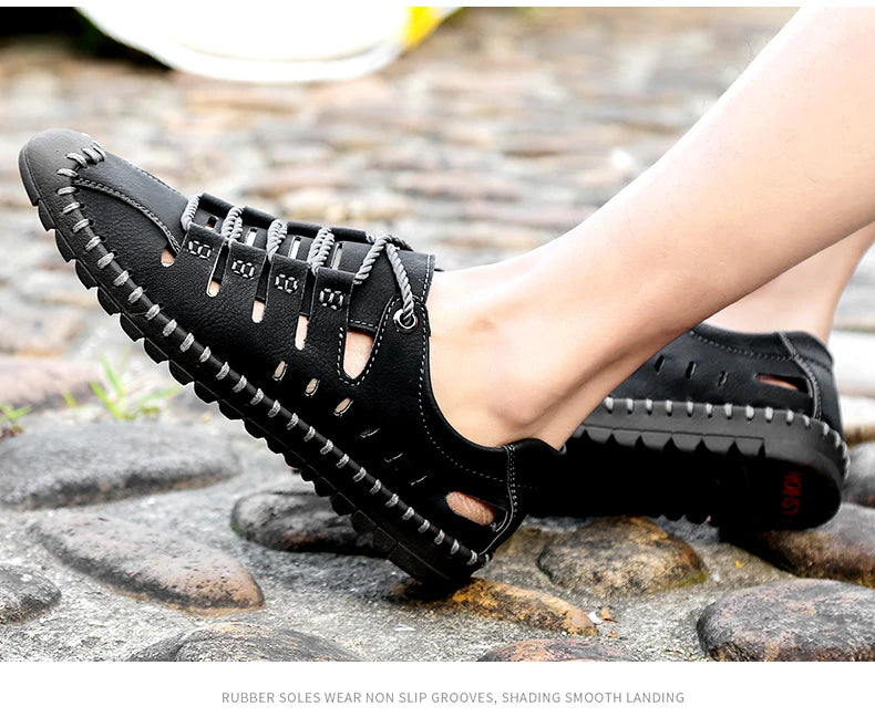 Cool and Comfortable Hollow-out Leather Sandals: Features a stylish hollow-out design that enhances breathability and comfort.